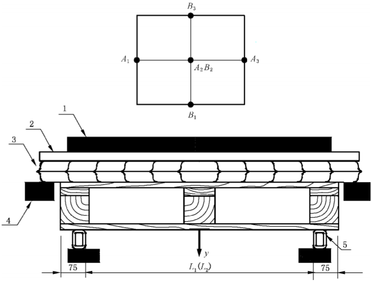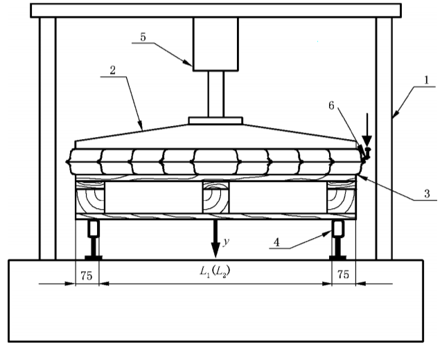 ⑵支(zhī)座布置:支座內(nèi)邊緣(yuán)(或中心線(xiàn))距托盤外緣75 mm;試驗台麵應水平、剛性,避免台麵變形影響撓度測量。