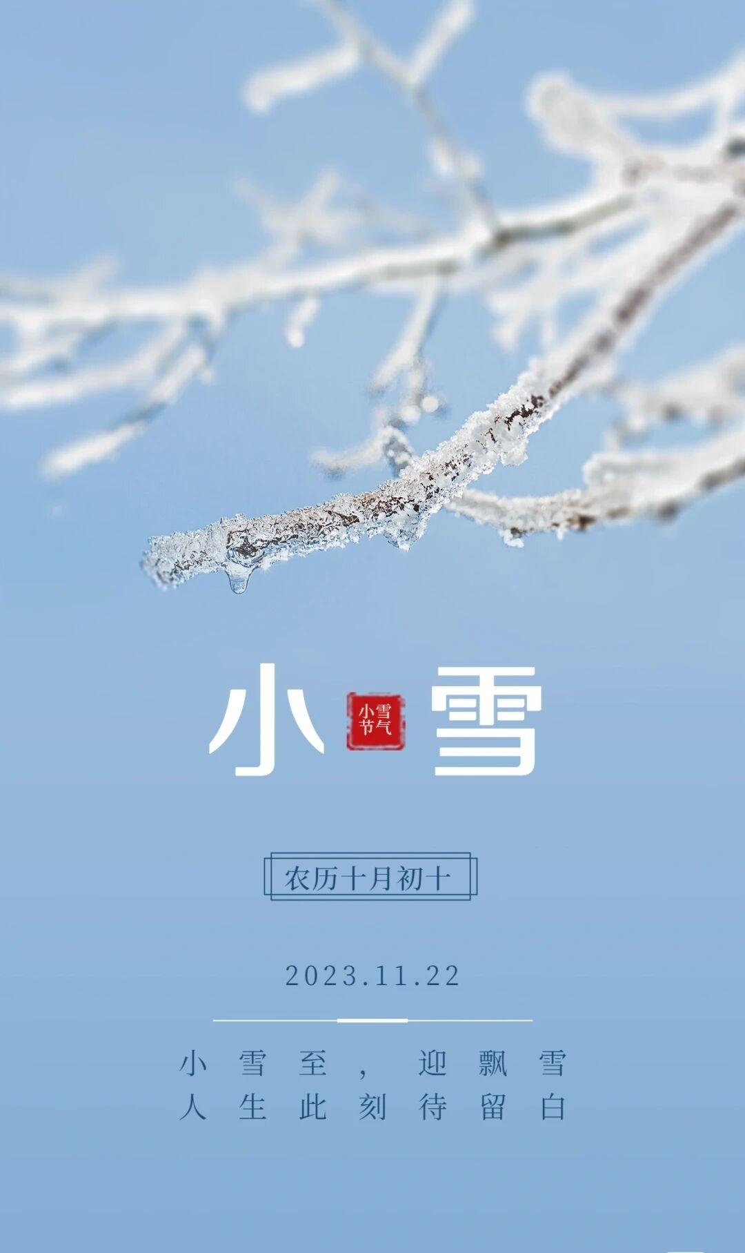 {小雪}是二十四節氣中的第20個節氣,冬季第2個節氣,時間在每年公曆11月22或23日,即太陽到達黃經240°時(shí)。小雪是(shì)反映降水與氣溫的節氣,它是寒潮和強冷空氣活動(dòng)頻數較高的節氣,小雪(xuě)節氣的到來,意味著天氣會越來越冷、降水量漸增。